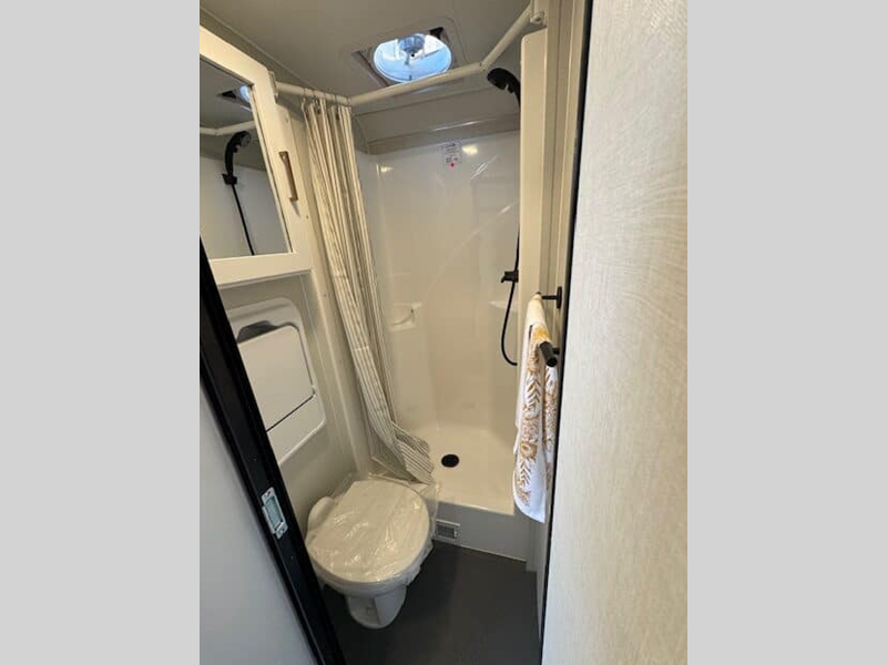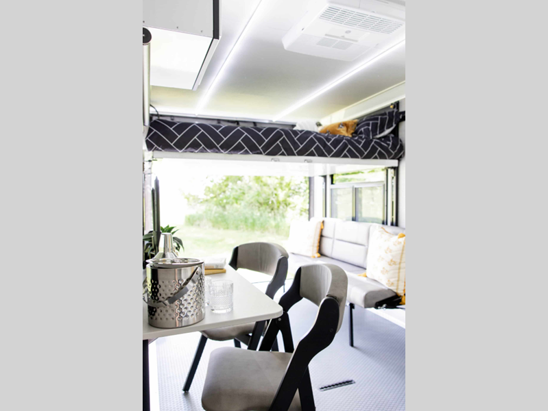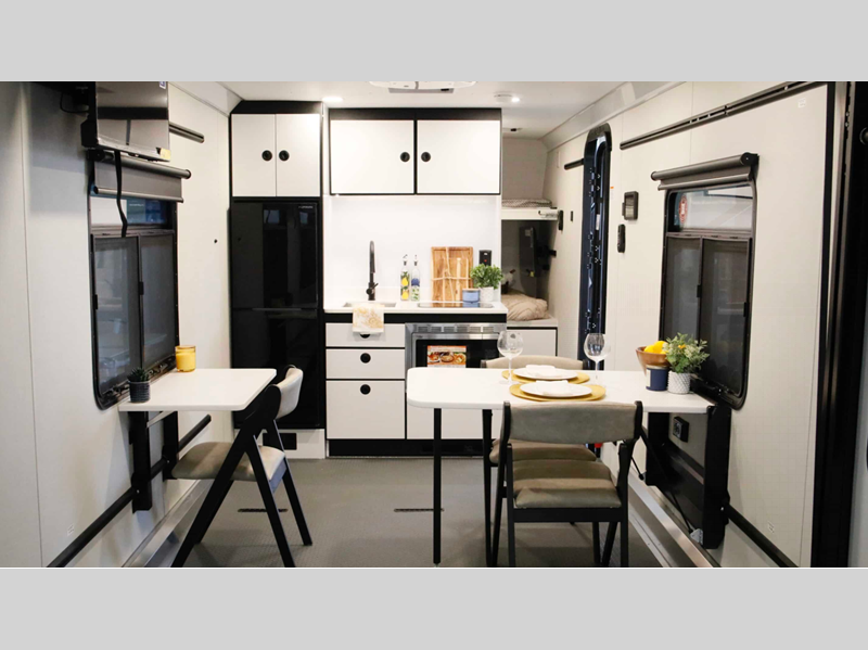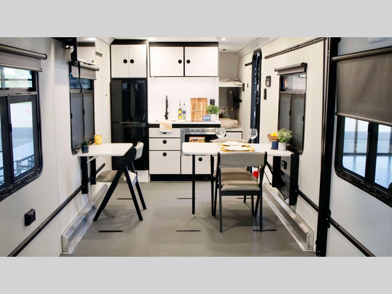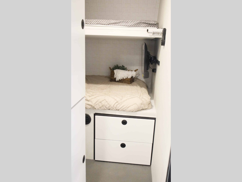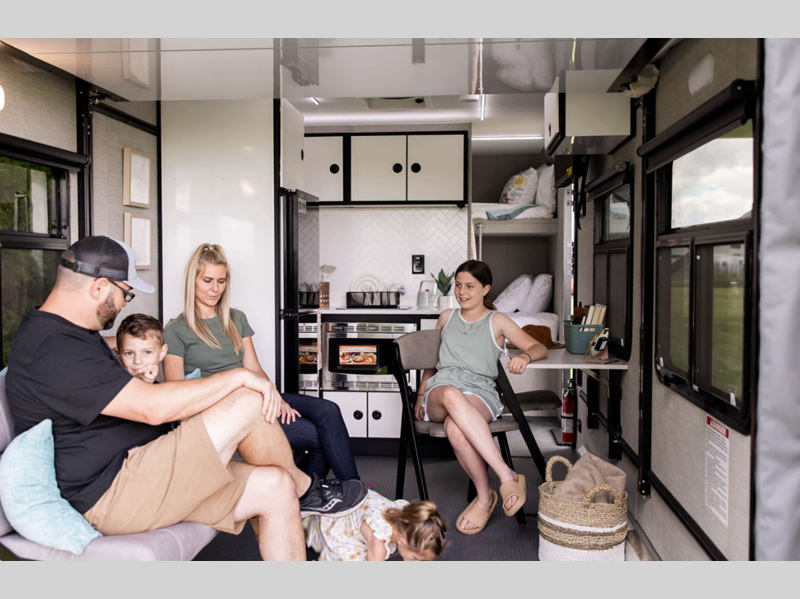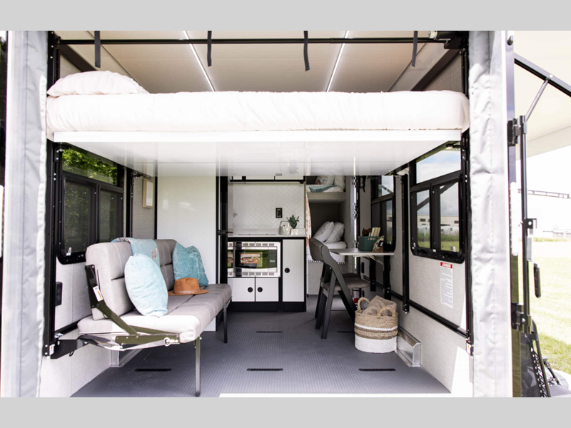 You can store all of your outdoor gear in the pass-through exterior storage and stay protected rain or shine under the power awning with a light strip. Inside, there are shades for added privacy, an Airline Track tie-down system to keep your toys and gear secure, plus a furnace and A/C unit for year around comfort.