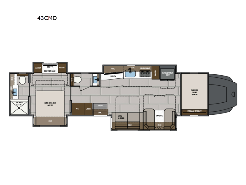 Traveling with friends and family has never been easier than with this coach! You will enjoy the master bedroom in the back with a full rear bath all to yourselves, a 66" x 80" mini-king bed slide, and a 4K Smart LED TV! Your guests can sleep on the sofa sleeper or booth dinette, or even on the bunk over cab! You'll find the four slides in this coach provide your crew with plenty of space to move about, and if you all need some fresh air, just relax outdoors under the awning with LED lights! When you don't feel like eating out, whip up a home-cooked meal on the two-burner induction cooktop or in the stainless-steel convection oven. There is also an 18 cu. ft. French door residential refrigerator with stainless steel doors you are sure to love. There is also a mid-ship half bath for convenience, plus a space to add an optional washer and dryer to make full time RV living easier than ever!