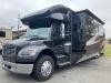 Each is built with aerodynamic fiberglass front and rear caps in two-pieces for easy replacement, a crowned fiberglass roof surface, and includes "Super Sandwich" floor construction with galvanized vapor barrier. The beautiful interior gives you luxury throughout with beautiful maple hardwood cabinets with soft closing drawers topped with solid surface countertops, stainless steel appliances, a French door refrigerator, and Ultra-Soft furniture. And the entertainment and electrical systems are something to boast about!