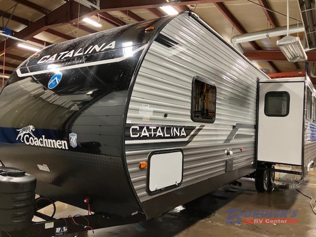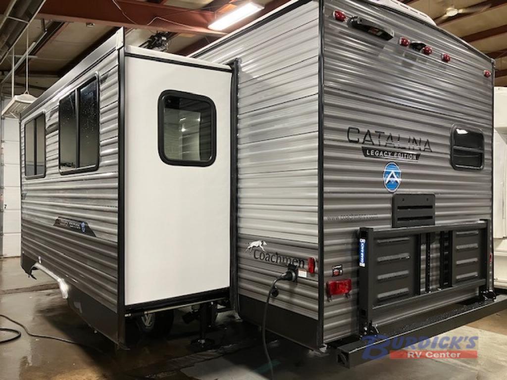 Each Catalina Legacy Edition travel trailer by Coachmen is constructed with a cambered structural steel I-beam frame for added strength and support, plus an enclosed and fully sealed corrugated underbelly to extend your camping season. There is also a seamless Alpha roof membrane, R-7 insulation throughout, full length frame outriggers, plus a Norco electromagnetic, powder coated chassis. You will love the 6' 9" interior height, along with Congoleum woodplank linoleum flooring, seamless Thermofoil countertops, and hard valance window treatments. There is an RV-Link 4G LTE remote connect with WiFi booster and extender prep to keep you connected to the outside world as you camp, and the JBL Aura cube multi-zone function media center is sure to keep you entertained all weekend long.
