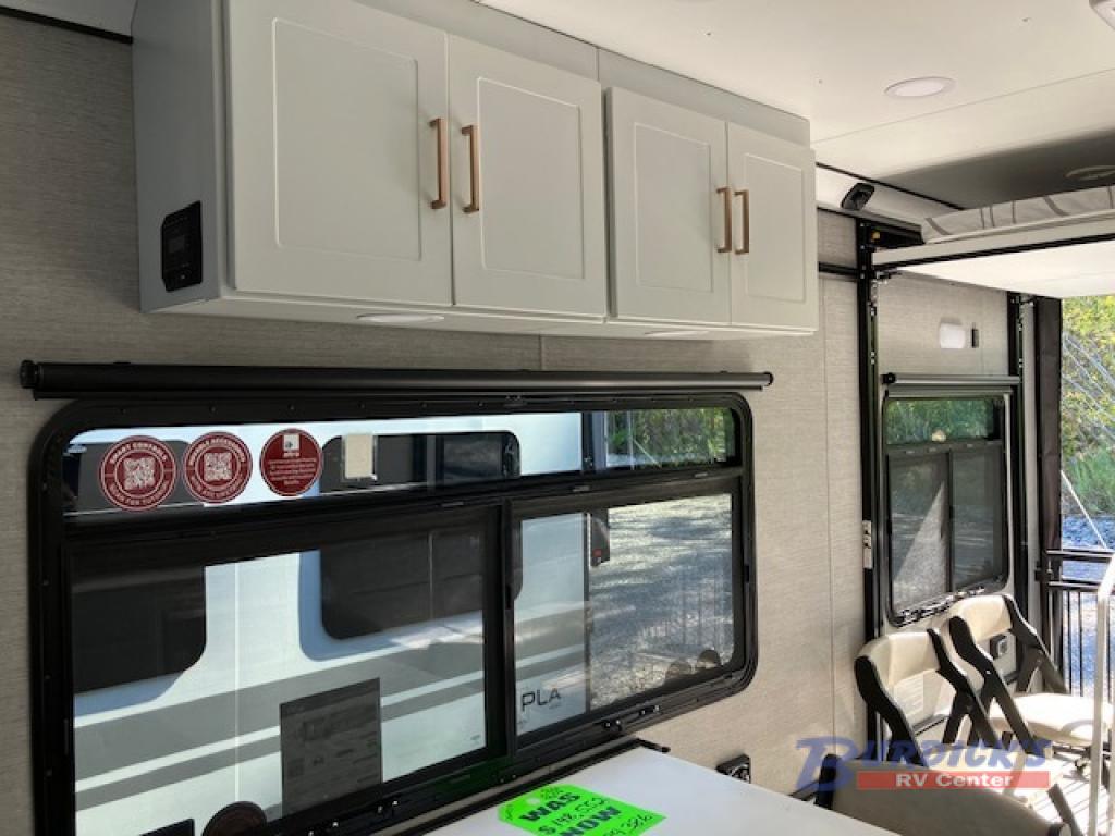 Time spent in this toy hauler will be time well spent! There is 15' 7" total garage space for your toys plus a cableless rear ramp door for easy unloading. You can whip up a meal on the LP two burner cooktop or in the convection microwave when you get back from trail riding, and the 10-cu. ft. 12V refrigerator will keep your food fresh. There is also a dinette table with four folding chairs where you can dine together. A full bath lets you clean up before bed, and you'll find a front private bedroom with a queen bed for all-around comfort!