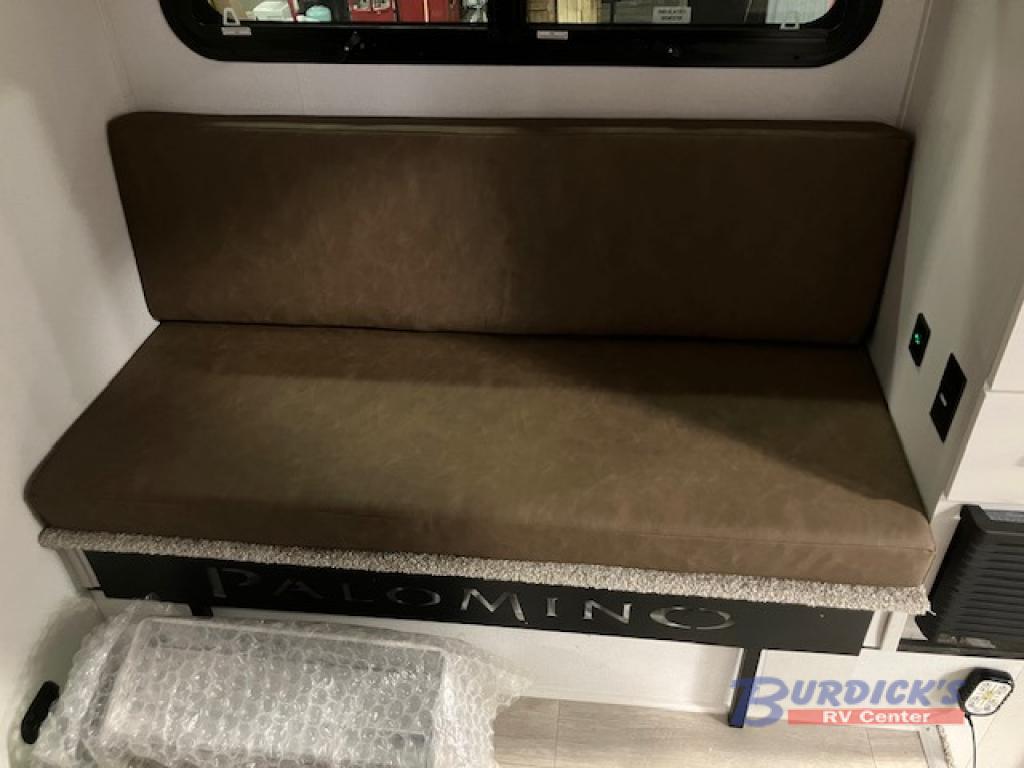 Each Backpack Edition truck camper by Palomino is constructed with high-density block foam insulation, an alpha super flex membrane roof, and Azdel substrate for added durability. You will also love the white or grey hi-gloss exterior fiberglass that is eye-catching and easy to keep clean. Inside, you'll find solid surface countertops, white cabinets, an undermount sink, and more comforts. The 400-watts of solar power and 100 Amp lithium battery will keep you powered up, and the electric jacks will have you set up at camp in no-time!