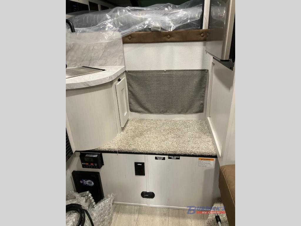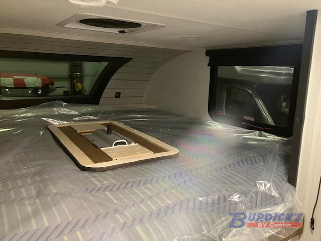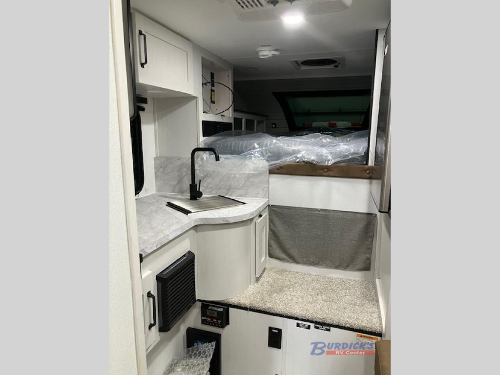 You will have everything you need for a comfortable trip in this hard side truck camper! There is a front queen bed to lay your head on at night with storage next to it and an entertainment center if you choose to add the optional TV. Above the two burner cooktop and sink are overhead cabinets to store your cooking essentials. The 60" x 22" jackknife sofa is not only a comfortable place to enjoy your meals, but also for transforming into an extra sleeping space, plus it has overhead cabinets to store your games. You even have a wet bath to freshen up in each morning!