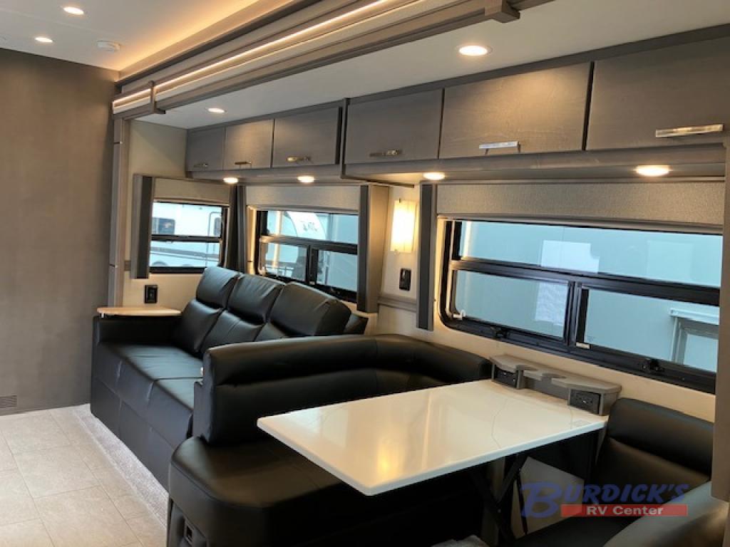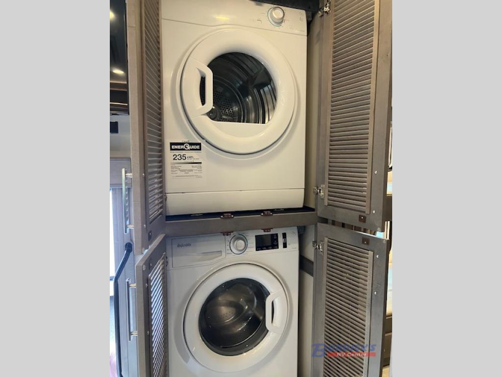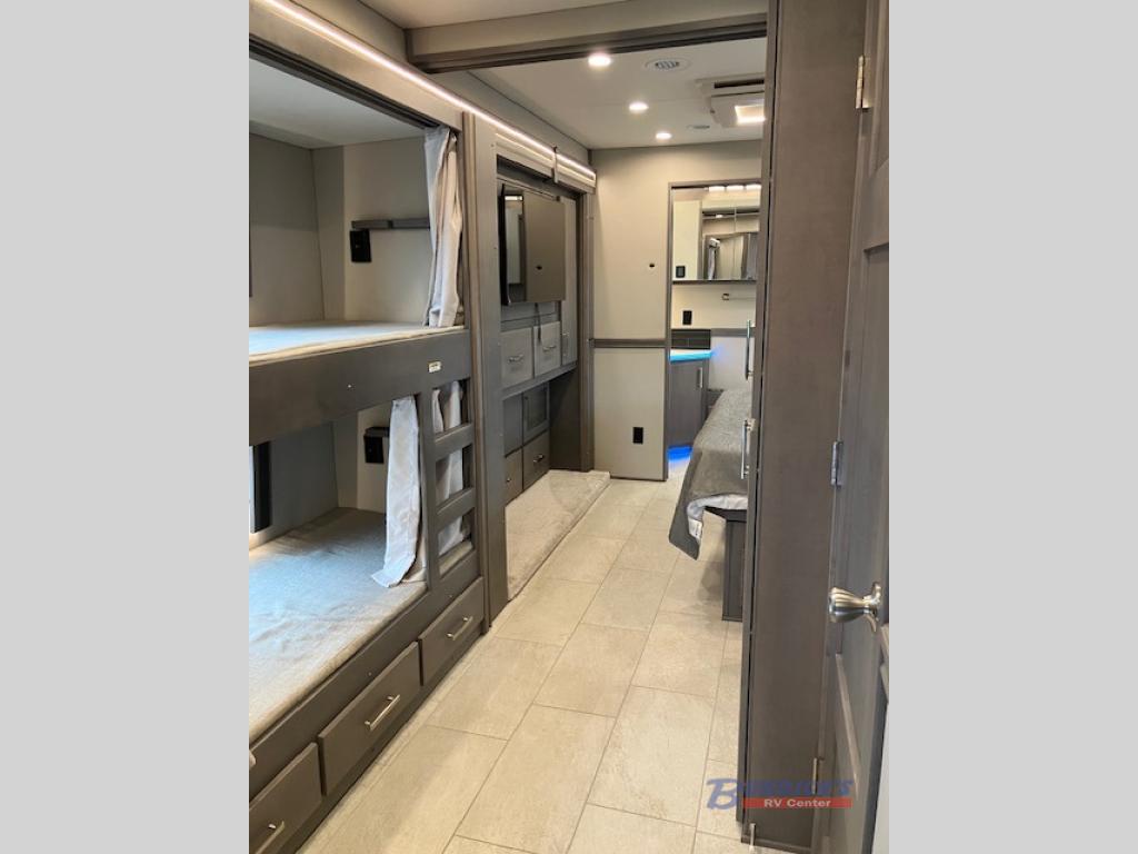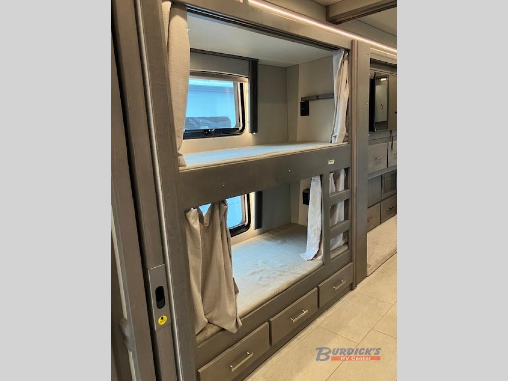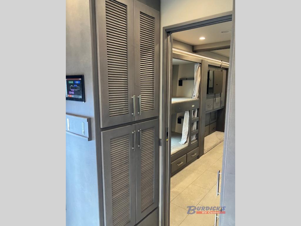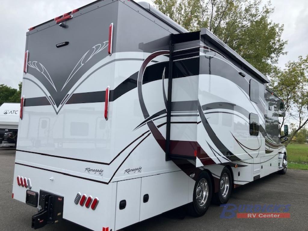If you're looking for a coach with more sleeping space and lots of conveniences, take a look at this Renegade Classic! There are two bunks the little ones will love, and the half bath is right across the bunks for nighttime use. The master bedroom includes a mini-king bed slide out, your own 4K Smart LED TV and a full rear bath. Any other guest you have can sleep on the sofa sleeper, booth dinette, or bunk over cab! Meals can be made in the stainless steel convection oven or on the two burner induction cooktop, and leftovers can go in the 18 cu. ft. French door residential refrigerator or kitchen pantry!