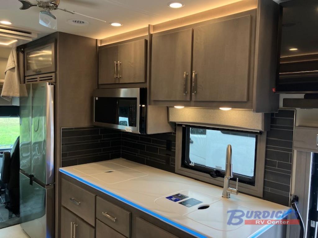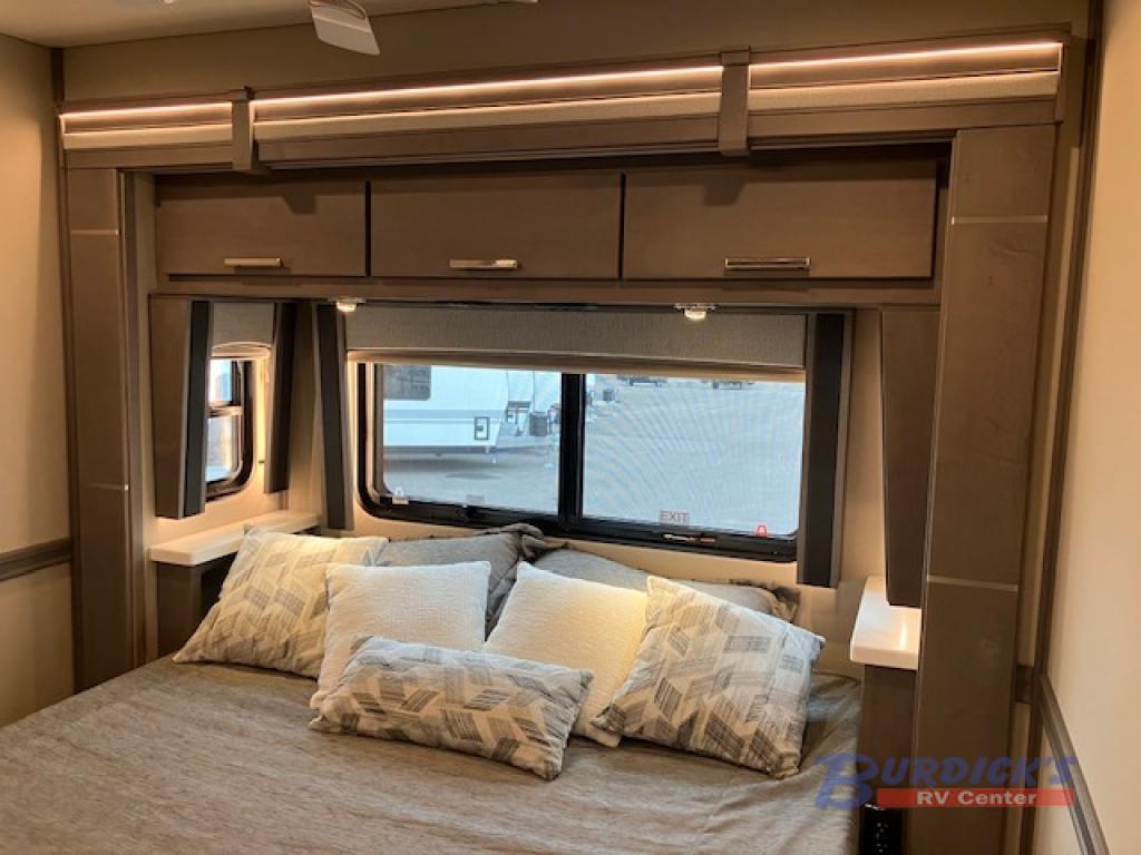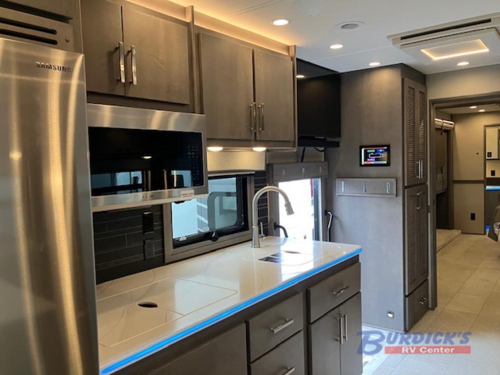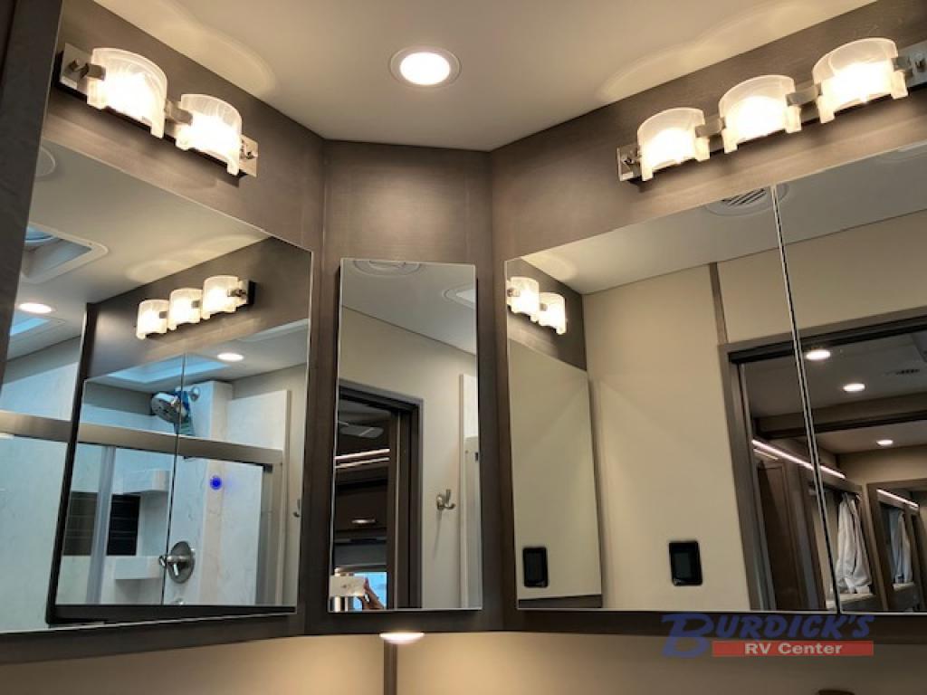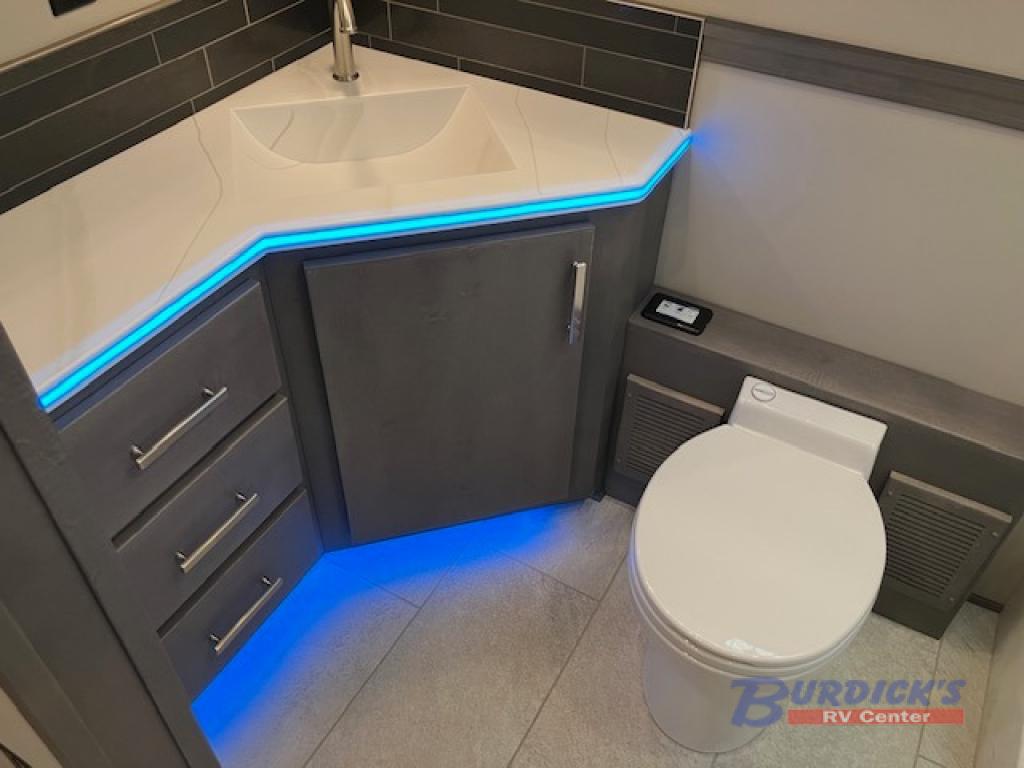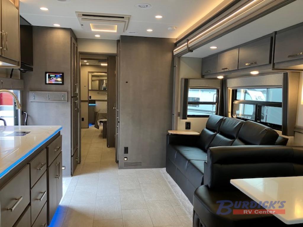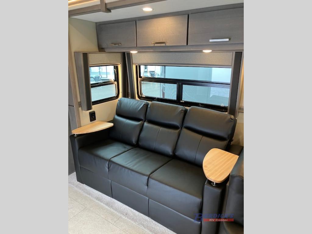 If you're looking for a coach with more sleeping space and lots of conveniences, take a look at this Renegade Classic! There are two bunks the little ones will love, and the half bath is right across the bunks for nighttime use. The master bedroom includes a mini-king bed slide out, your own 4K Smart LED TV and a full rear bath. Any other guest you have can sleep on the sofa sleeper, booth dinette, or bunk over cab! Meals can be made in the stainless steel convection oven or on the two burner induction cooktop, and leftovers can go in the 18 cu. ft. French door residential refrigerator or kitchen pantry!
