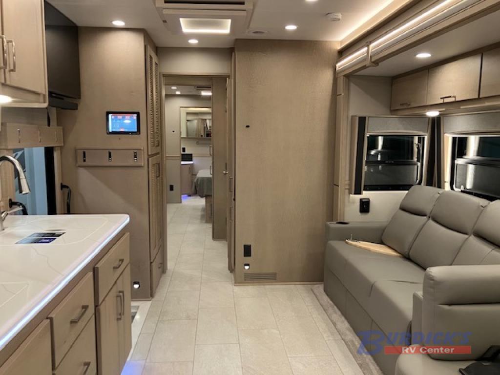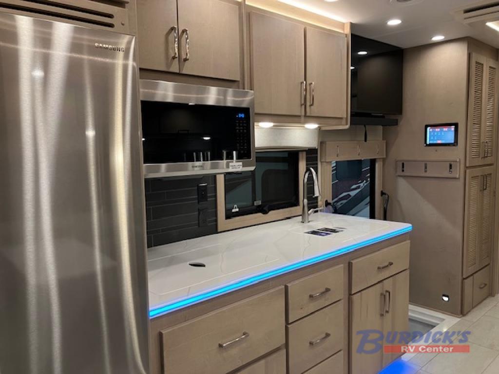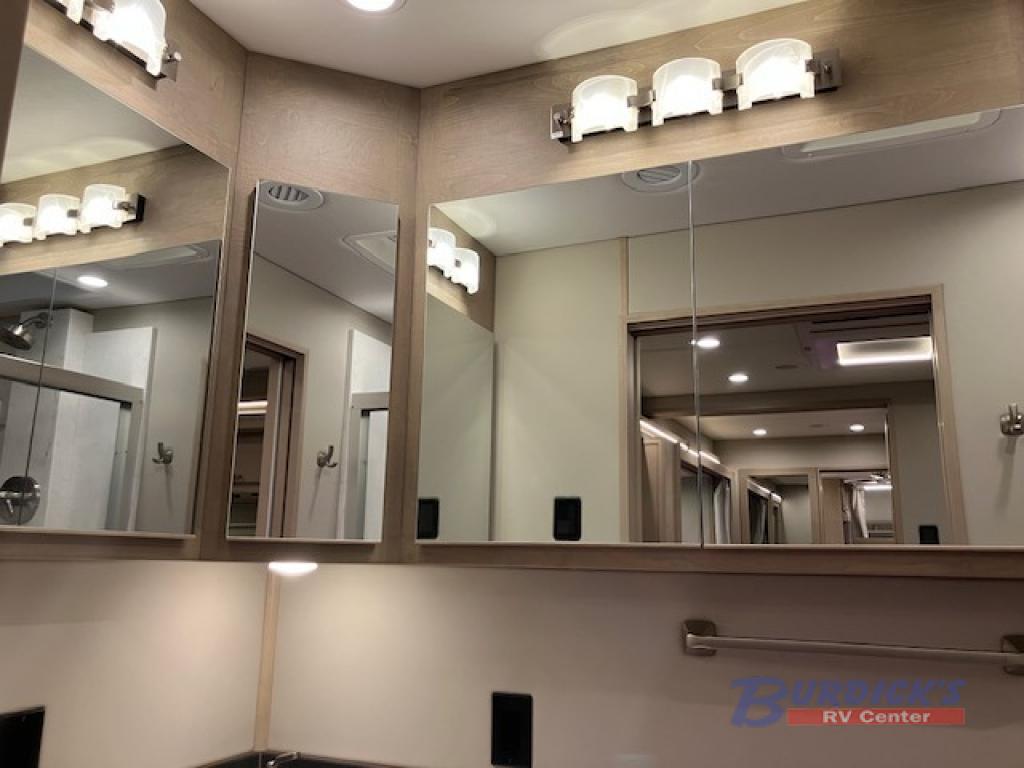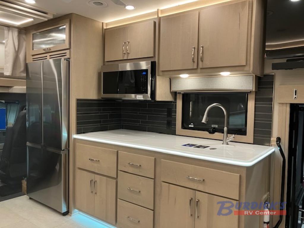 If you're looking for a coach with more sleeping space and lots of conveniences, take a look at this Renegade Classic! There are two bunks the little ones will love, and the half bath is right across the bunks for nighttime use. The master bedroom includes a mini-king bed slide out, your own 4K Smart LED TV and a full rear bath. Any other guest you have can sleep on the sofa sleeper, booth dinette, or bunk over cab! Meals can be made in the stainless steel convection oven or on the two burner induction cooktop, and leftovers can go in the 18 cu. ft. French door residential refrigerator or kitchen pantry!
