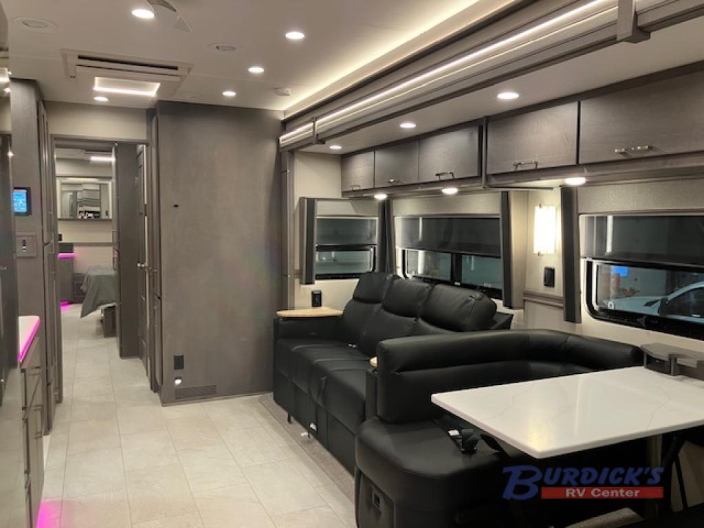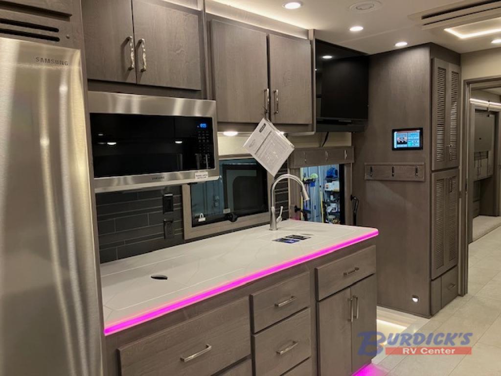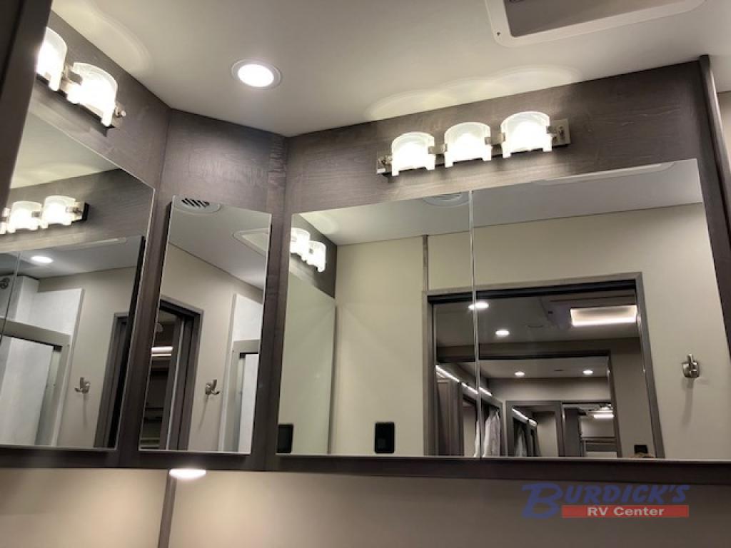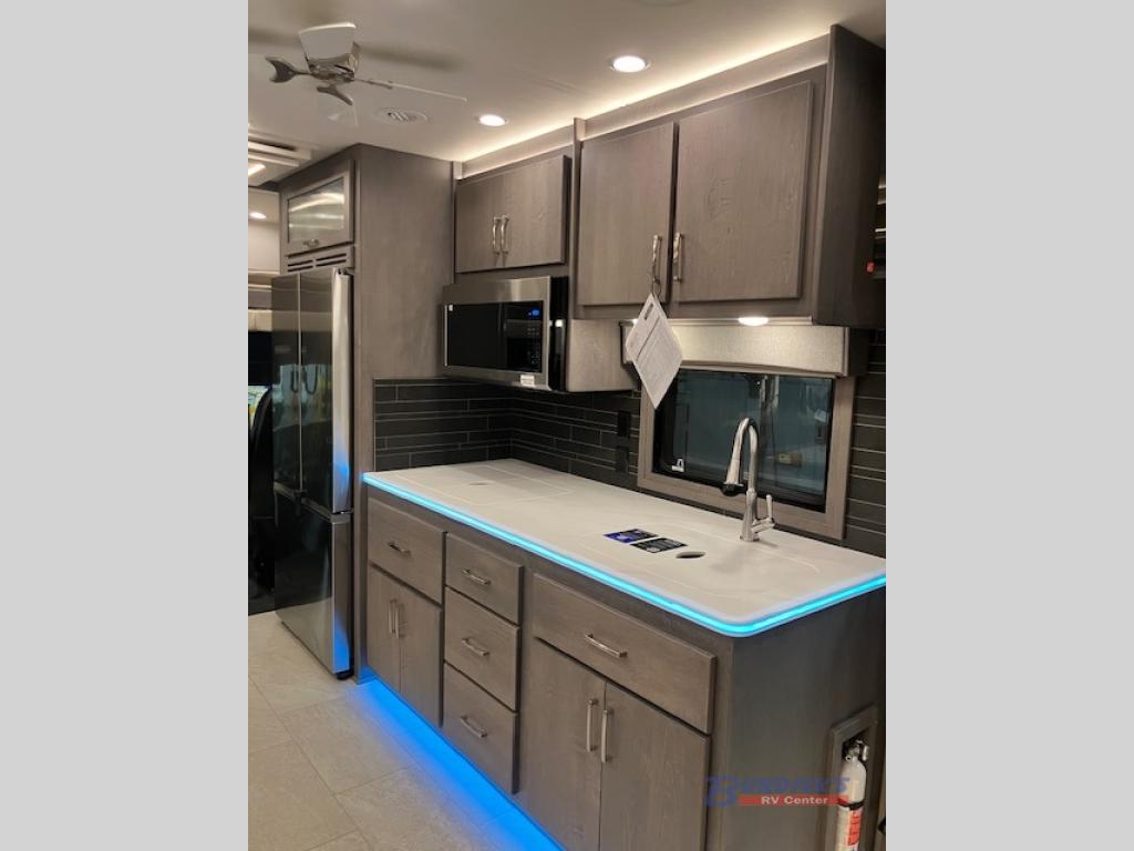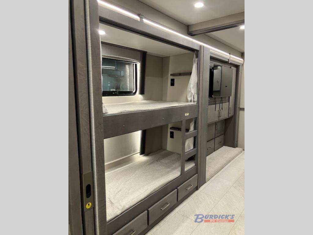 If you're looking for a coach with more sleeping space and lots of conveniences, take a look at this Renegade Classic! There are two bunks the little ones will love, and the half bath is right across the bunks for nighttime use. The master bedroom includes a mini-king bed slide out, your own 4K Smart LED TV and a full rear bath. Any other guest you have can sleep on the sofa sleeper, booth dinette, or bunk over cab! Meals can be made in the stainless steel convection oven or on the two burner induction cooktop, and leftovers can go in the 18 cu. ft. French door residential refrigerator or kitchen pantry!