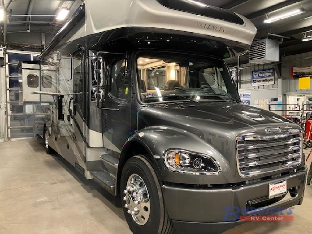 Each one of these Renegade Valencia Super C diesel motorhomes offer ultimate comfort and durable construction! They have a Freightliner S2RV chassis for a refined ride with responsive handling, as well as a powerful Cummins ISB 360 HP engine with a 3,000MH Alison transmission and a single 100 gallon fuel tank to get you farther. A few of the beautifully designed interior features are the solid hardwood cabinets, the polished solid surface countertops, and the stainless steel appliances. Travel in comfort and style with the modern furniture and abundant storage areas like the exterior steel storage compartments with carpeted lining. You will also appreciate the four point automatic hydraulic leveling system and the multiplex system with Bluetooth app control. With eight colorway paint options and three interior décor options, you can be sure to find the right one for you!