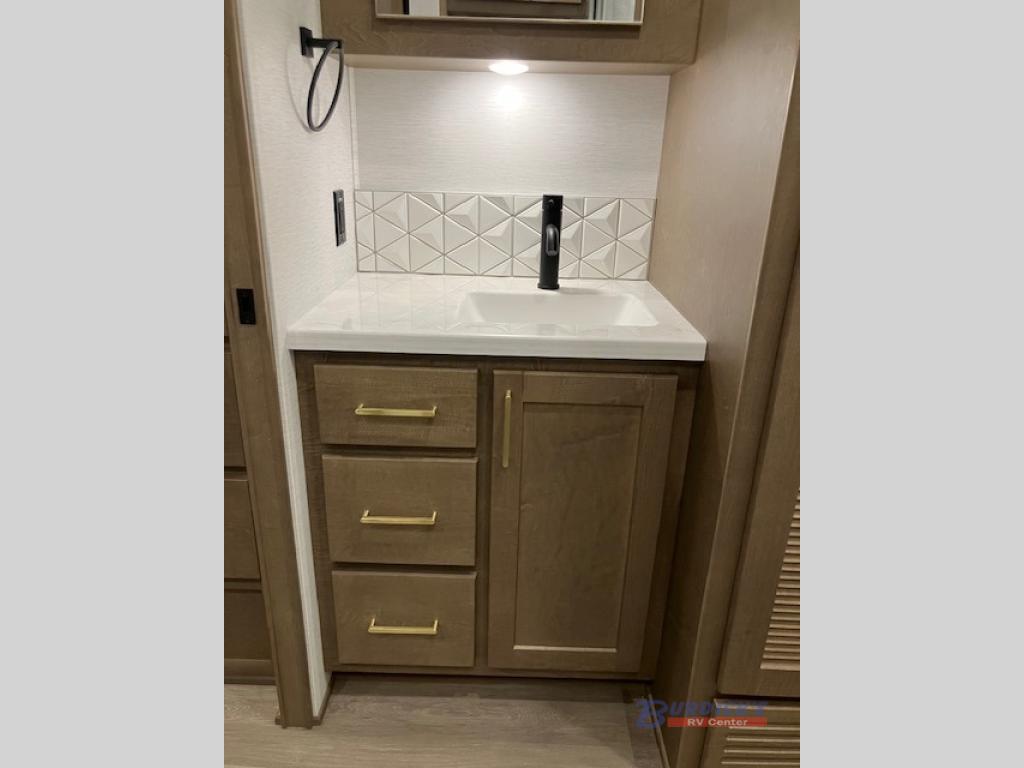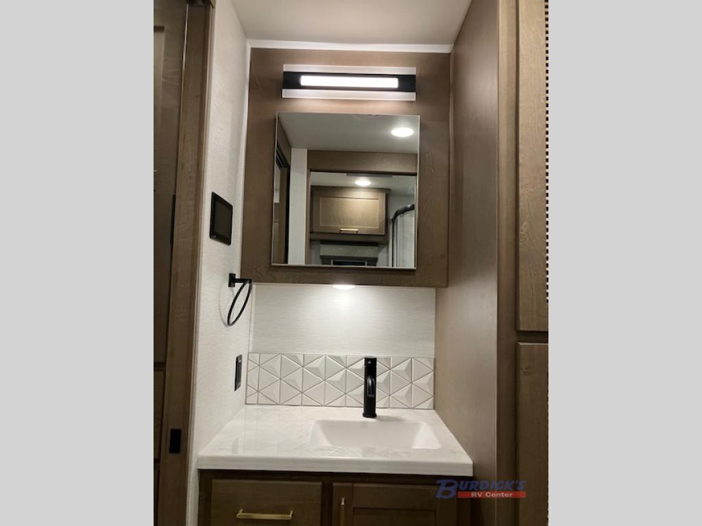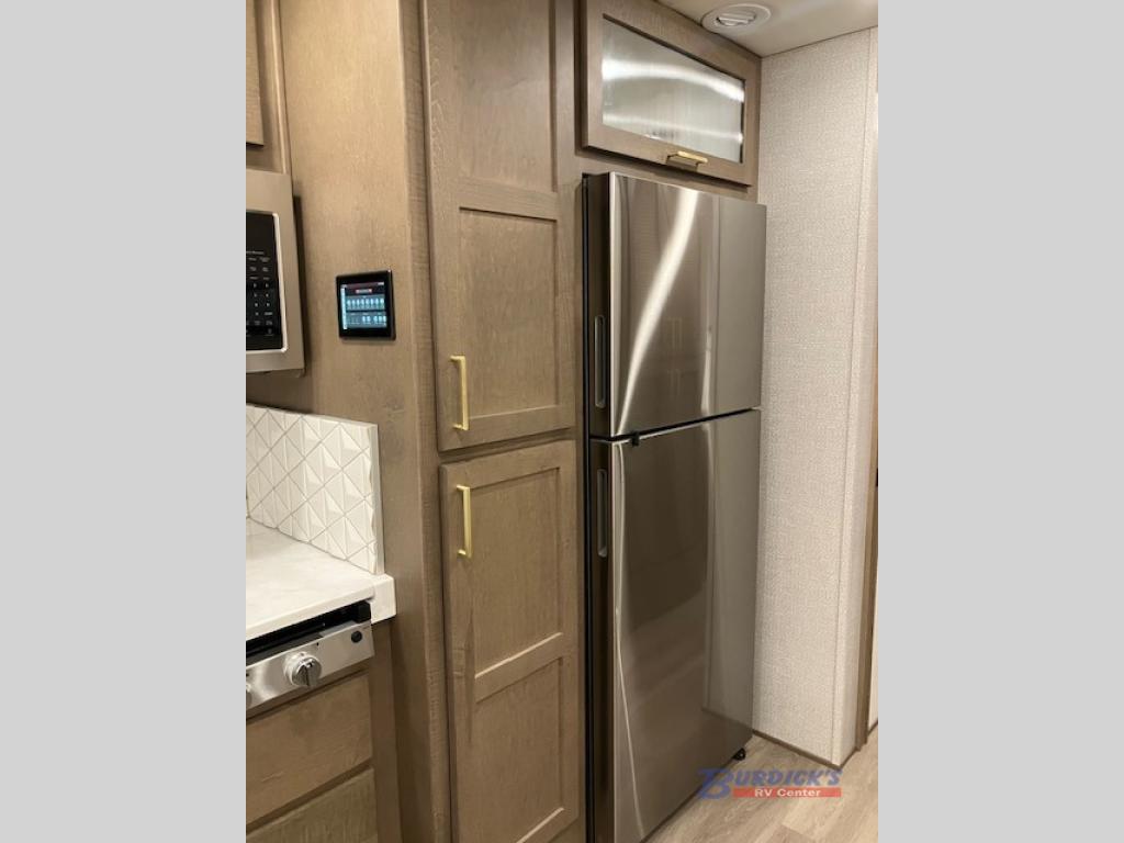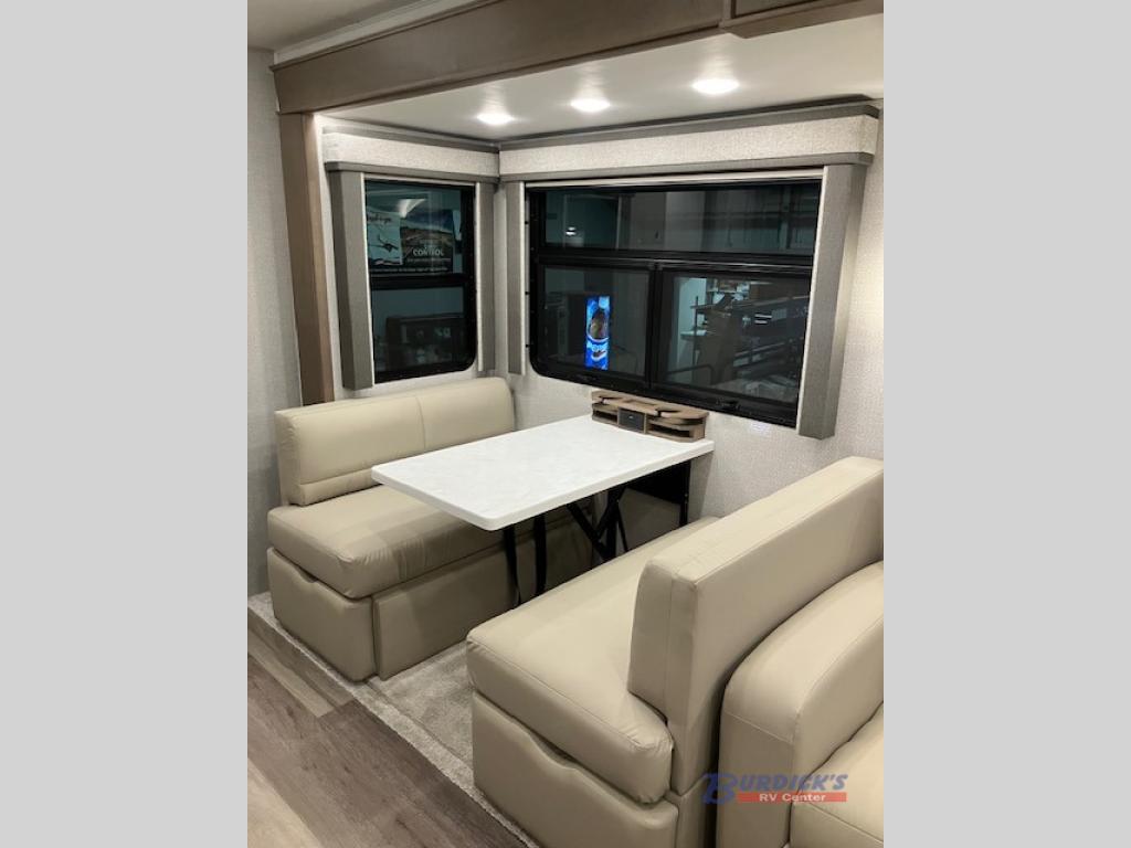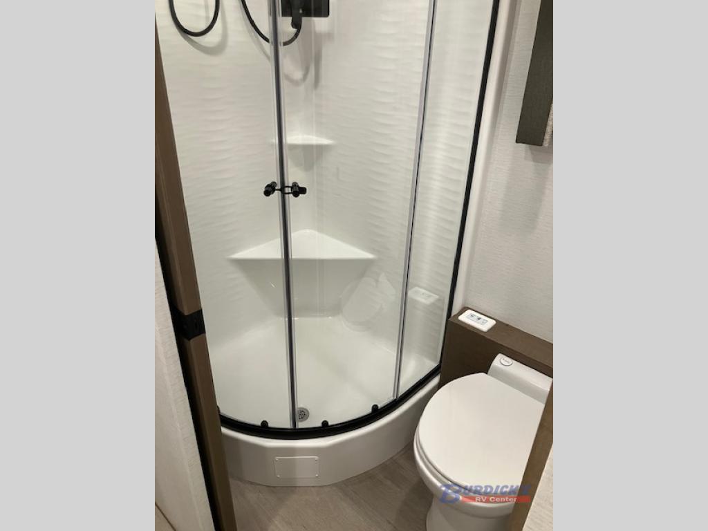 You will experience comfort and luxury with this motorhome! The rear private bedroom has a 66" x 74" mini-king bed across from a 32" Smart LED TV with a dresser below and closets on either side, plus it leads into the separated bathroom. The bathroom has a radius shower with a skylight above for natural lighting as you get ready and a closet that pre-wired and plumbed for an optional washer and dryer for clean clothes throughout your entire trip. The sofa sleeper and booth dinette offer a comfortable place to relax and convert to sleeping space. Grab a cold beverage from the 18 cu. ft. residential stainless steel refrigerator then head to the exterior entertainment center to watch the big game on the 32" Smart LED TV with a sound bar on a swivel and USB charging!