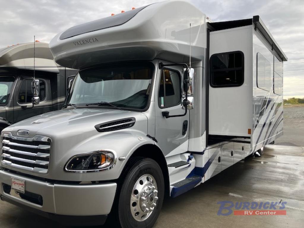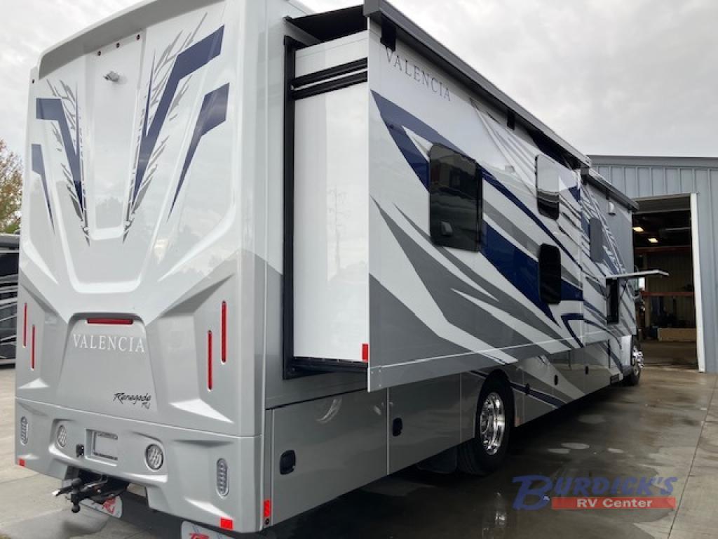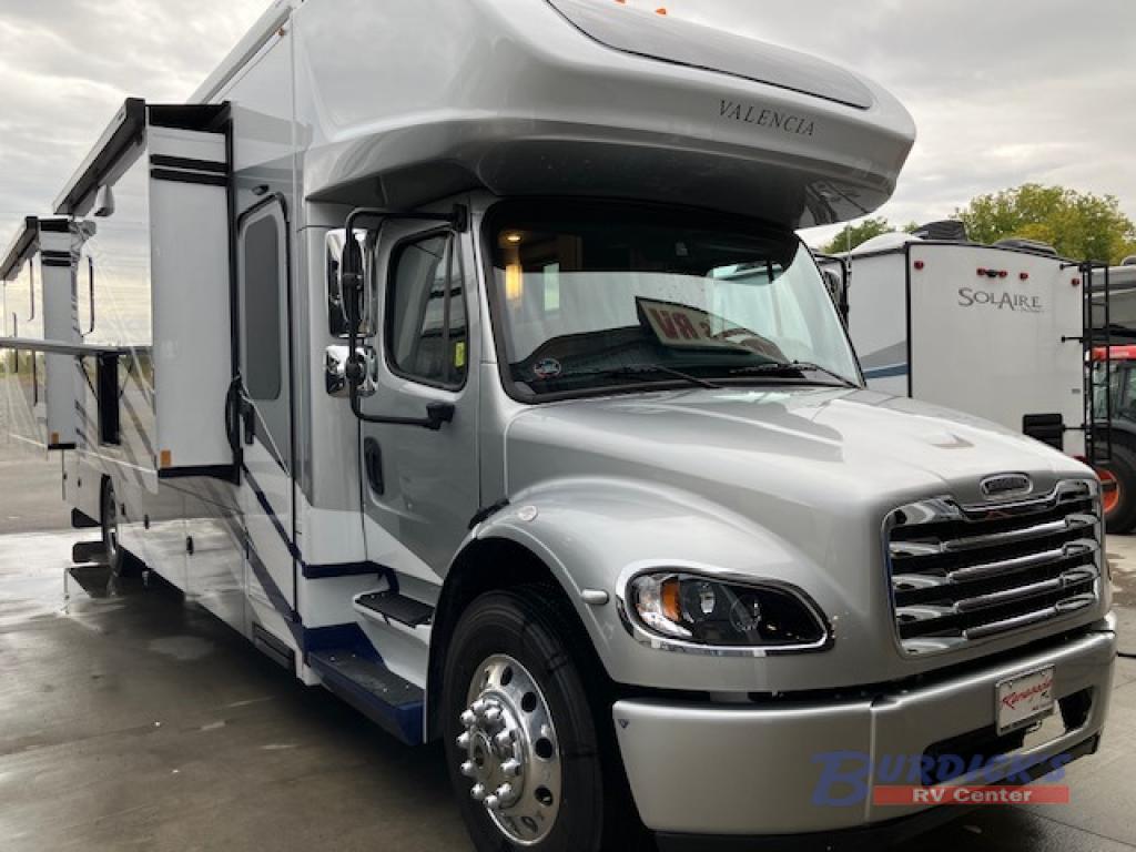 Each one of these Renegade Valencia Super C diesel motorhomes offer ultimate comfort and durable construction! They have a Freightliner S2RV chassis for a refined ride with responsive handling, as well as a powerful Cummins ISB 360 HP engine with a 3,000MH Alison transmission and a single 100 gallon fuel tank to get you farther. A few of the beautifully designed interior features are the solid hardwood cabinets, the polished solid surface countertops, and the stainless steel appliances. Travel in comfort and style with the modern furniture and abundant storage areas like the exterior steel storage compartments with carpeted lining. You will also appreciate the four point automatic hydraulic leveling system and the multiplex system with Bluetooth app control. With eight colorway paint options and three interior décor options, you can be sure to find the right one for you!