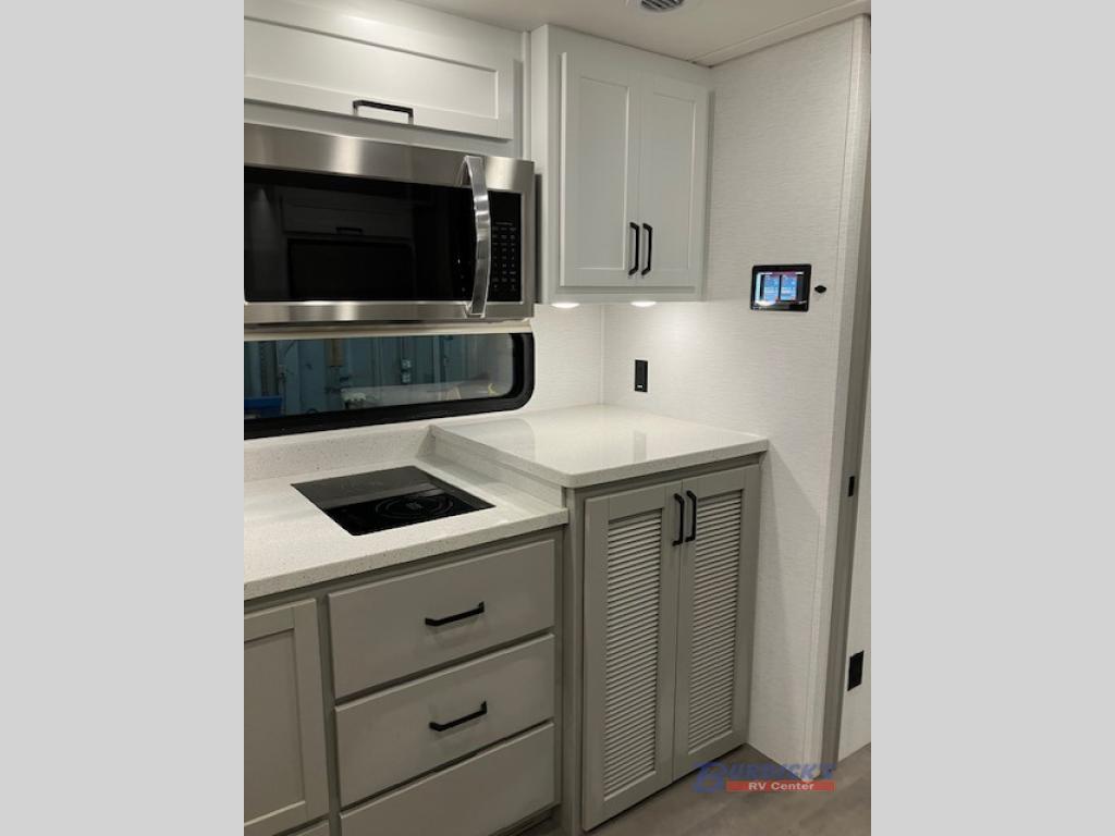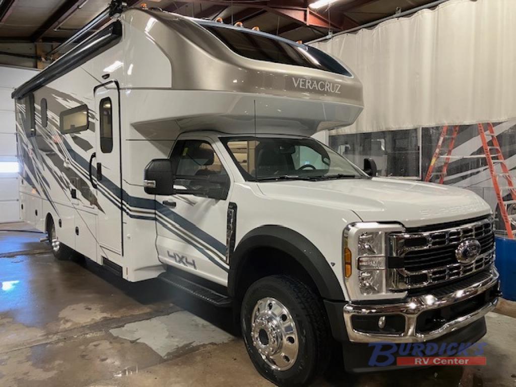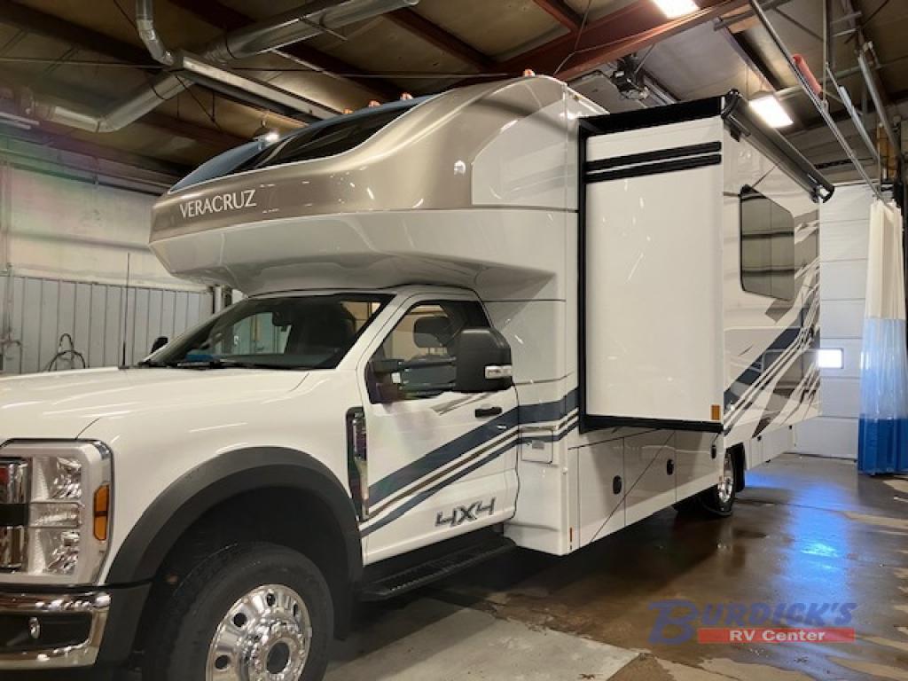 You will have the confidence to go anywhere with the Renegade Veracruz Super C diesel motorhome! It is built with a 6.7L power stroke diesel engine with 330 horsepower and a four-wheel drive system to go off-road when the adventure calls for it. The 8" LCD touchscreen infotainment with wireless phone connection will come in handy when you want to play your favorite tunes. Some other key features to make note of are the four-point automatic hydraulic leveling system, the Maxx Air fans in the bath and living area, and ducted heating and air conditioning to keep you comfortable all year long! The interior will have you feeling right at home with three stylish decor options, solid surface countertops throughout, solid wood cabinets, and plenty of storage for all your belongings!