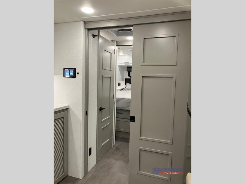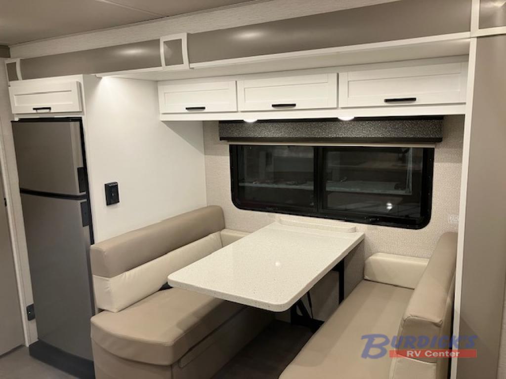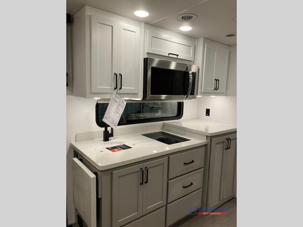 Take a chance and have an adventurous expedition in this motorhome! It features a rear private bedroom that blends cozy vibes with premium bedding. There are dual wardrobes and overhead cabinets to keep everything from boots to blankets perfectly organized. This floor plan delivers exceptional use of space with the walkthrough bathroom that is of easy access from your bedroom or the kitchen! There is versatility when it comes to sleeping spaces between the 66" x 75" mini-king bed, bunk over cab, and the dinette. The kitchen has been beautifully redesigned with maple hardwood cabinets, solid surface countertops, extra space provided by the dinette slide, and storage above the sink, a pantry, and a 10 cu. ft. refrigerator to keep your perishables fresh. You'll also find a LED TV about the entry for entertainment!