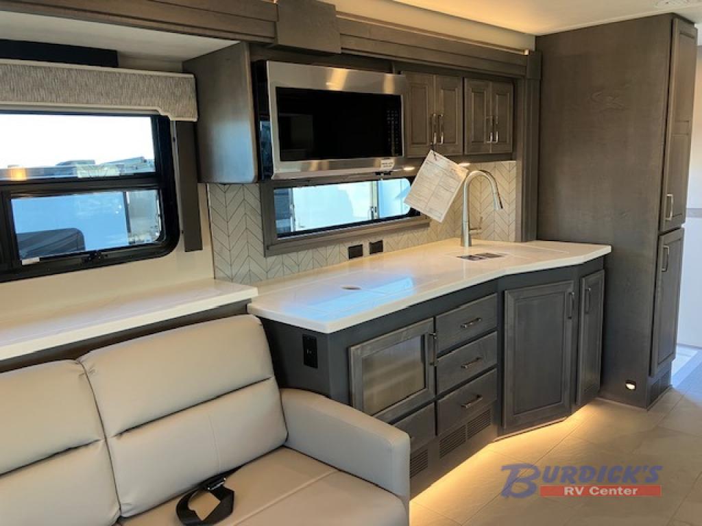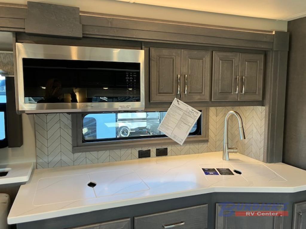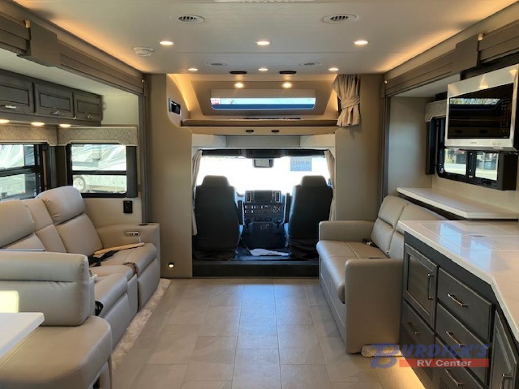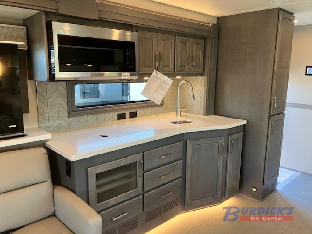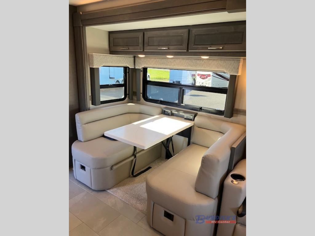 With any Verona LE Super C diesel motorhome by Renegade, you will be wowed by all the luxury features. The 2" vacuum laminated sidewalls feature welded aluminum framing for added support, and the 1.5" high density foam insulation in the sidewalls and roof means you can travel all year long in any season. The captain will love how easy it will be to drive with the Allison 3200TRV electronic 6-speed transmission, plus there are rear and side view cameras for easy parking and an upgraded cab sound system to keep the tunes going. Each model includes dual 15,000 BTU roof A/C pumps, an Aqua-Hot 450D hydronic water and zone heating system, plus MaxxAir power vents to keep you comfortable all year long. All of your power needs will be met with an 8kW Onan Quiet diesel generator, 3,000w True Sine wave inverter, (2) 330Ah AGM house batteries, and (3) 200W solar panels. Inside, there are three modern decor options to choose from, along with solid surface countertops, grouted tile backsplash, Maple hardwood cabinetry, and many more comforts of home!