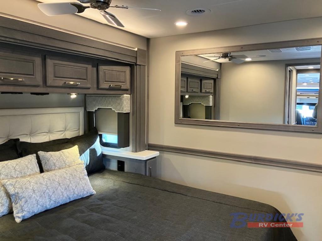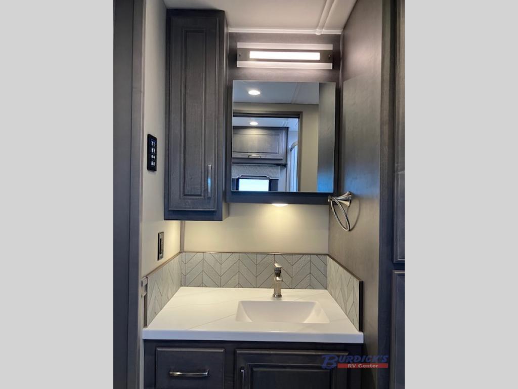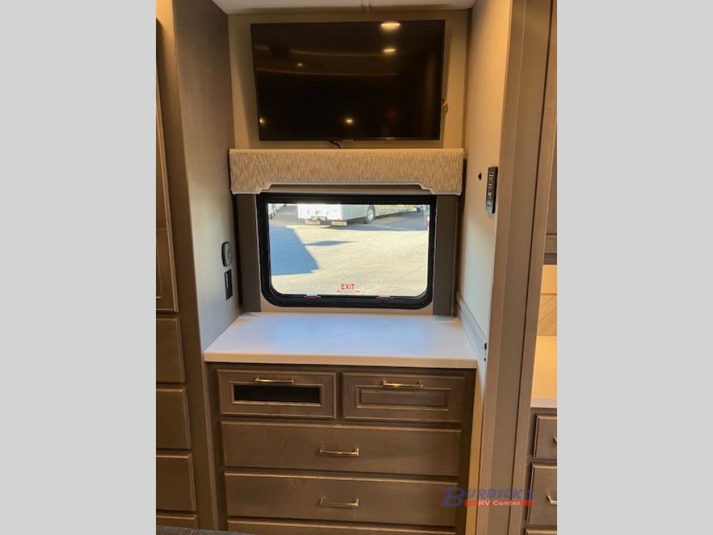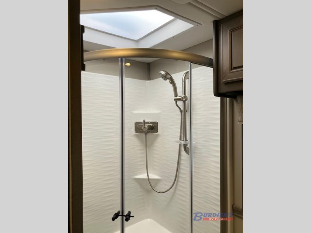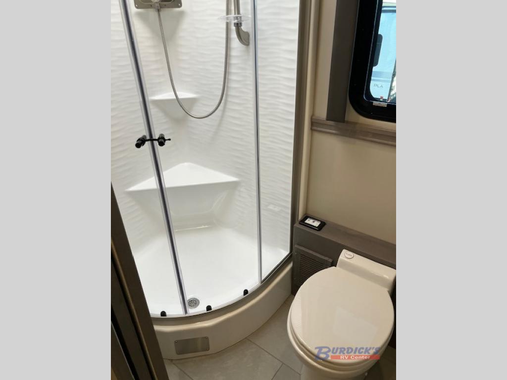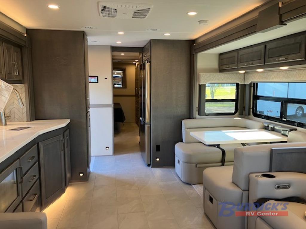 With any Verona LE Super C diesel motorhome by Renegade, you will be wowed by all the luxury features. The 2" vacuum laminated sidewalls feature welded aluminum framing for added support, and the 1.5" high density foam insulation in the sidewalls and roof means you can travel all year long in any season. The captain will love how easy it will be to drive with the Allison 3200TRV electronic 6-speed transmission, plus there are rear and side view cameras for easy parking and an upgraded cab sound system to keep the tunes going. Each model includes dual 15,000 BTU roof A/C pumps, an Aqua-Hot 450D hydronic water and zone heating system, plus MaxxAir power vents to keep you comfortable all year long. All of your power needs will be met with an 8kW Onan Quiet diesel generator, 3,000w True Sine wave inverter, (2) 330Ah AGM house batteries, and (3) 200W solar panels. Inside, there are three modern decor options to choose from, along with solid surface countertops, grouted tile backsplash, Maple hardwood cabinetry, and many more comforts of home!