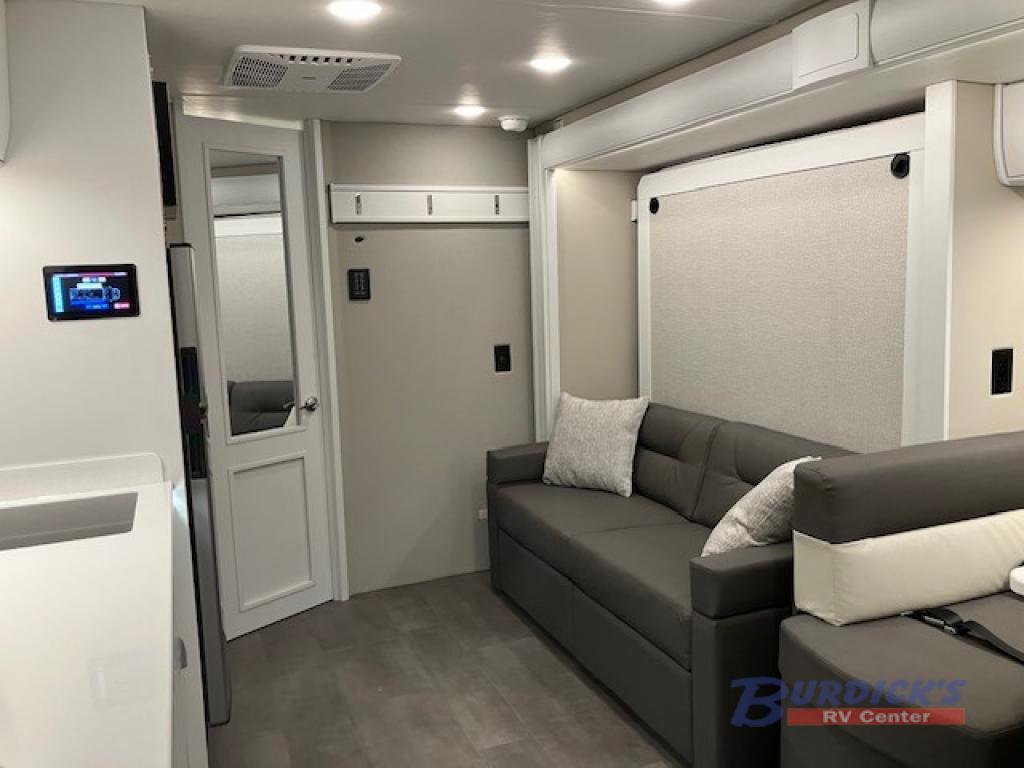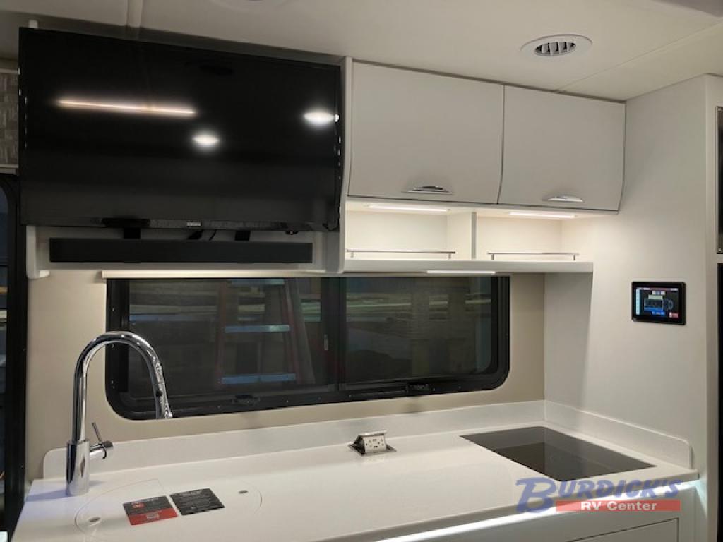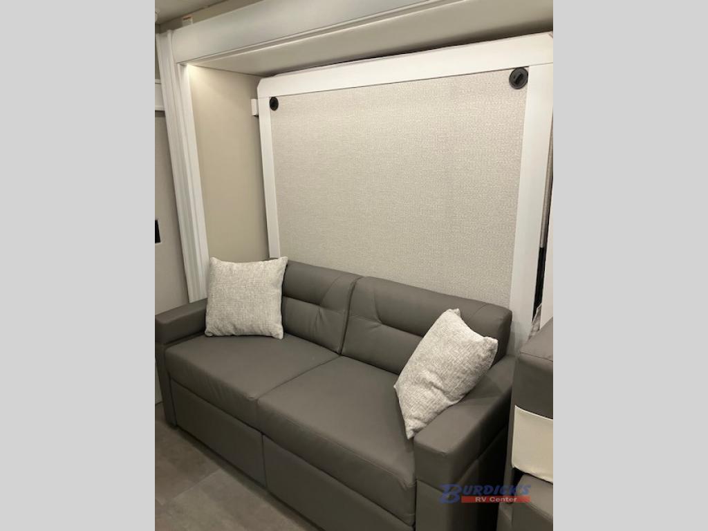 This is the perfect couples motorhome to explore the country! You will stay squeaky clean in the full rear bathroom with shower, and a large closet to store your clothes, towels, and other toiletries. Depending on what time you enter this coach will determine whether you see the sofa or the 65" x 72" Murphy bed. The kitchen has a two burner cooktop, a convection microwave, and an 8 cu. ft. refrigerator to prepare home cooked meals, and a booth dinette to enjoy them at. The 46" x 80" bunk mattress over the cab lets another member join in on the adventure and the booth dinette offers sleeping space as well.