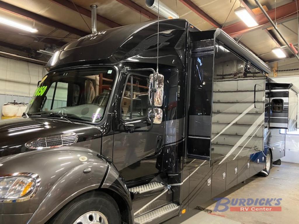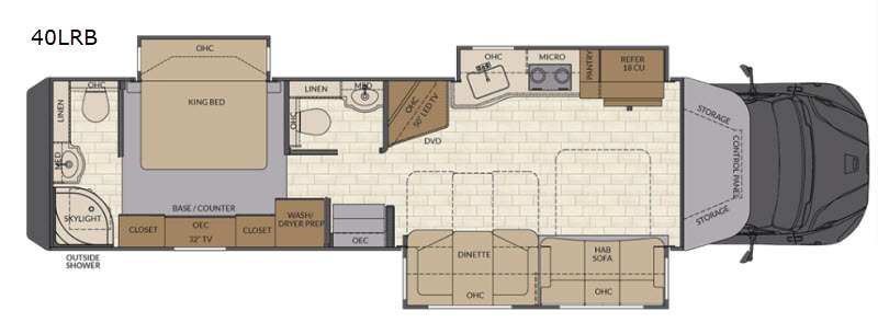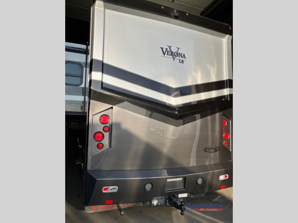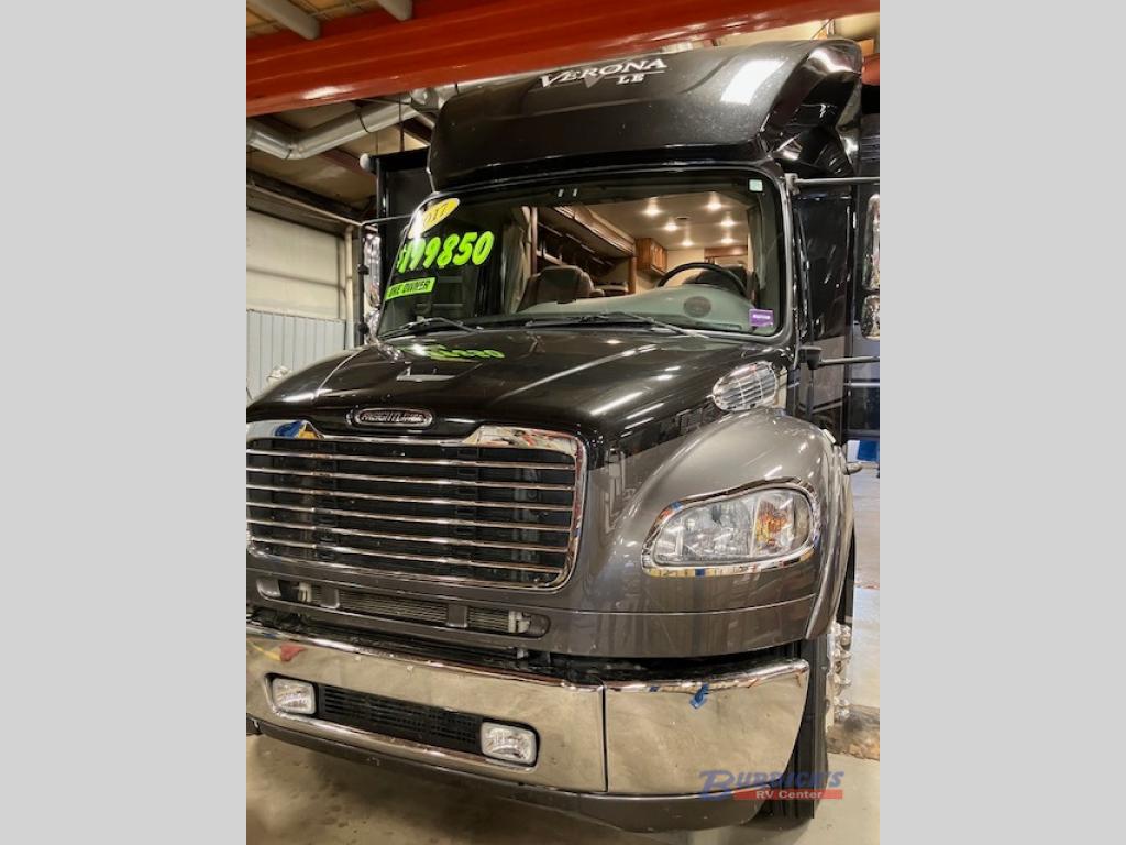 Are you ready to see the country? Come see just how easy it is to load up your family and hit the road with this Verona LE 40LRB Super C diesel motor home. There is plenty of room throughout this model with triple slide outs and sleeping space for six people. Meals can be prepped in the kitchen area where you will find an 18 cu. ft. refrigerator, two burner range, and a sink. Enjoy relaxing at the comfortable hide-a-bed sofa or dinette and in the corner there is a 50" LED TV where you can watch TV. Almost straight in from the door is the convenient half bathroom and in the rear you will find the full bathroom with a radius shower. With the outside shower you can easily clean up from any outdoor activities before you head inside!