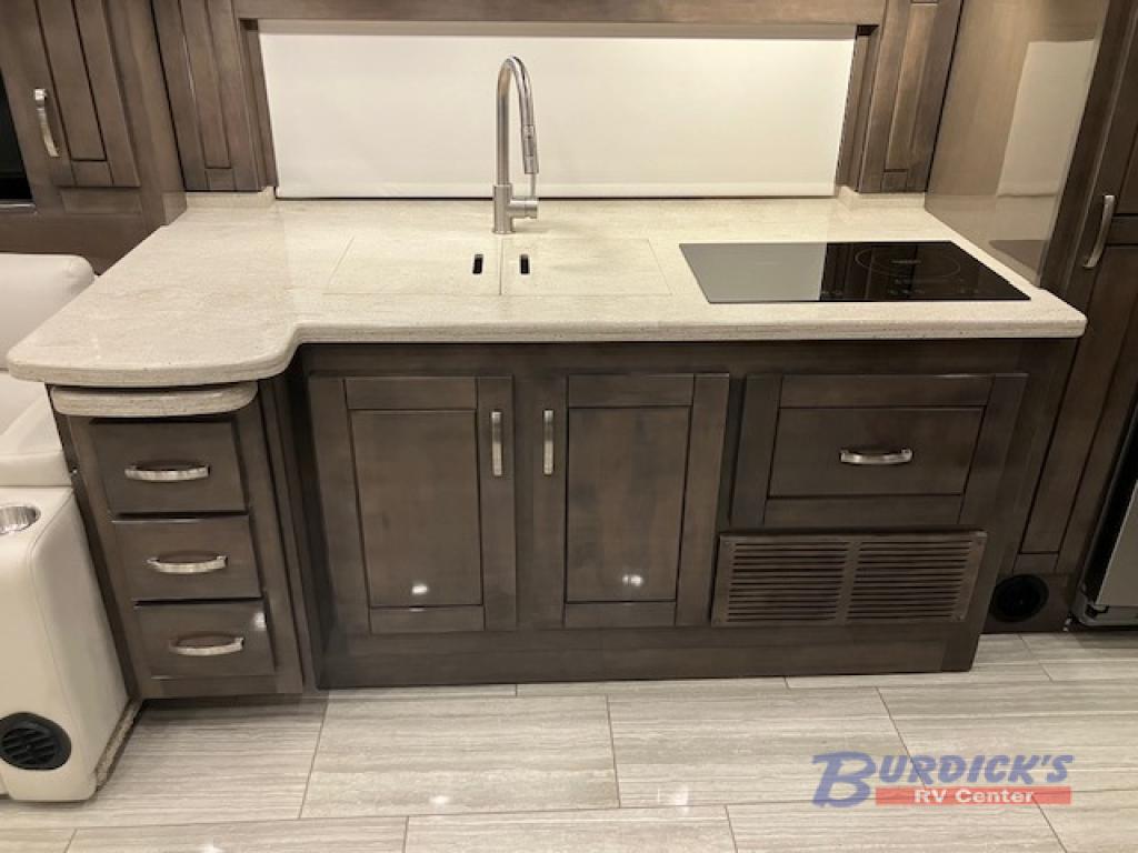 With any Embark Class A diesel motorhome by Jayco, you will enjoy precision handling and stability for a smooth ride, thanks to JRide Premium, and the automatic leveling jacks makes setting up a breeze. Constructed with X-Bridge bracing welded into the chassis frame, vacuum-bonded floors and sidewalls, plus a steel-reinforced front cap and windshield frame, you can be sure you're getting a durable home-on-wheels that will last for years. These models include an Xite XSG3 infotainment system with navigation, Bluetooth, Sirius XM and AM/FM tuner, an Xite 360 degree camera system, dual USB ports, plus many more technology features to get you to your destination safely and on time. Inside, you'll love the hand-laid polished porcelain floor tiles, the Flexsteel furniture, the solid surface countertops, and the central vacuum system to make cleaning up easier than ever!