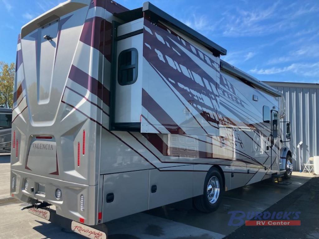 Each one of these Renegade Valencia Super C diesel motorhomes offer ultimate comfort and durable construction! They have a Freightliner S2RV chassis for a refined ride with responsive handling, as well as a powerful Cummins ISB 360 HP engine with a 3,000MH Alison transmission and a single 100 gallon fuel tank to get you farther. A few of the beautifully designed interior features are the solid hardwood cabinets, the polished solid surface countertops, and the stainless steel appliances. Travel in comfort and style with the modern furniture and abundant storage areas like the exterior steel storage compartments with carpeted lining. You will also appreciate the four point automatic hydraulic leveling system and the multiplex system with Bluetooth app control. With six Colorway paint options and three interior décor options, you can be sure to find the right one for you!
