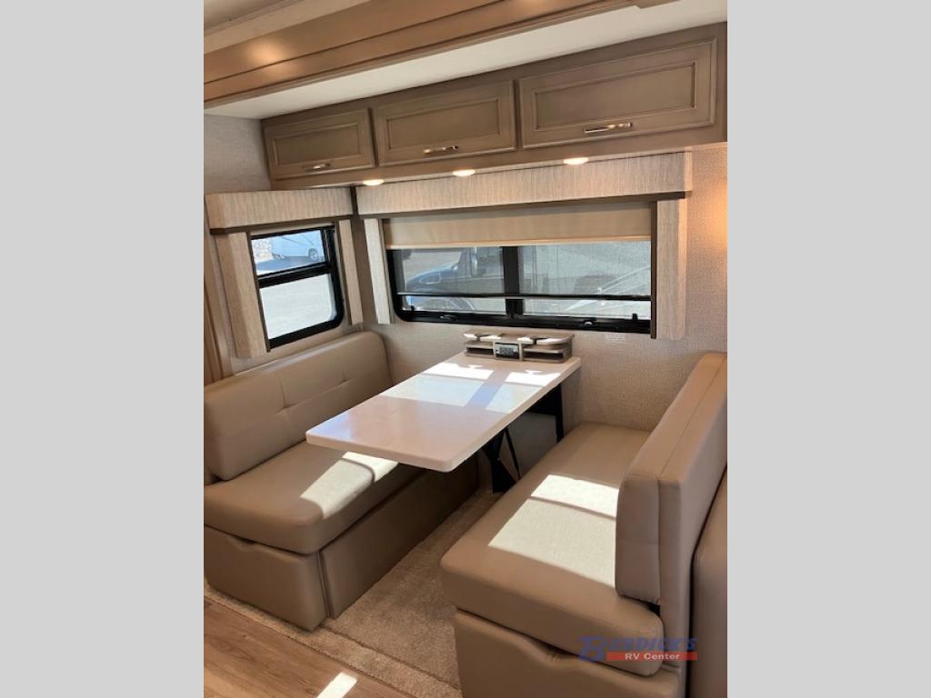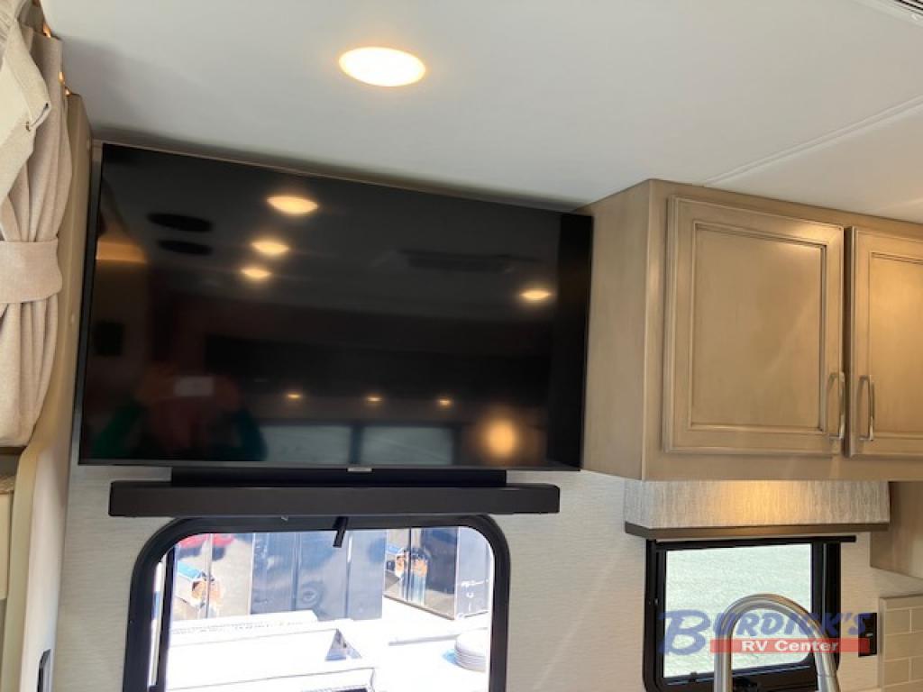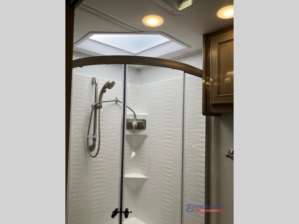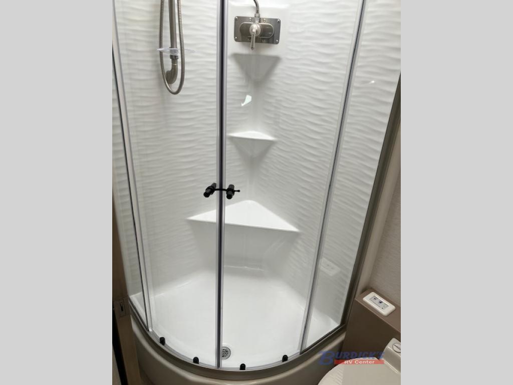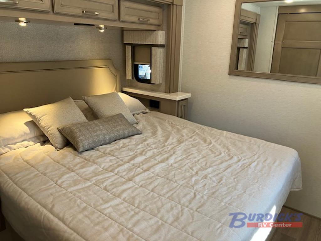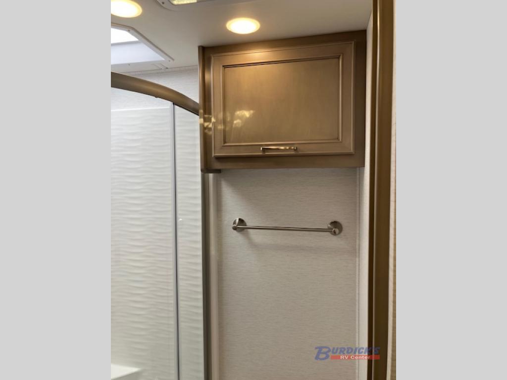 Whether you travel while you work or enjoy long-trips in your RV, this coach provides all the luxury, flexibility and comfort you could want! The main living and kitchen area is spacious with a furniture slide which includes a booth dinette and a slide-a-bed sofa which both offer sleeping space when needed for guests. The cook will love using the stainless steel convection microwave oven and the induction cooktop when making meals, and the French door residential refrigerator will hold lots of cold food. The separated bathroom allows two people to get ready at once, and the mini-king bed slide gives you more floor space in the bedroom to get to the closets and dresser. You will find a 32" 4K Smart LED TV in the bedroom to watch before bedtime, and the exterior offers a 32" LED TV to watch the big game while relaxing under the electric awning with LED lights. And you might like to add the washer/dryer option to the prepped closet to keep everything clean while on the road.