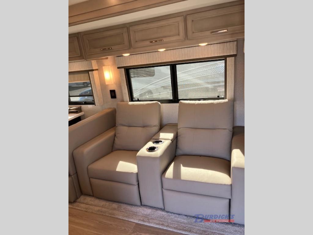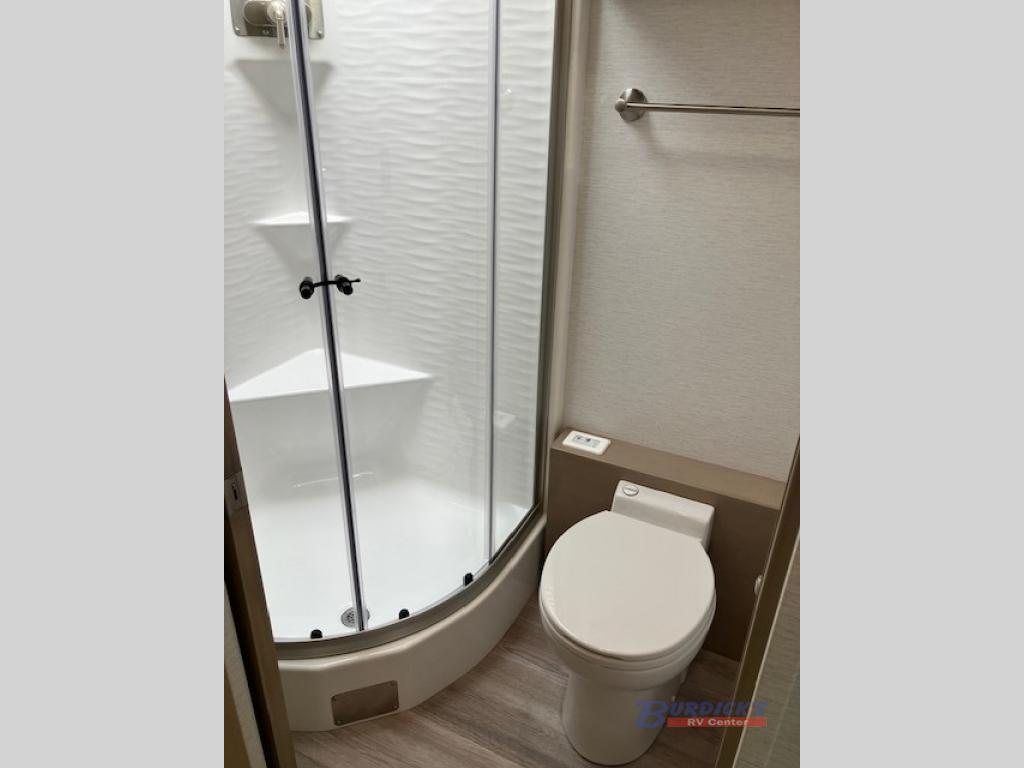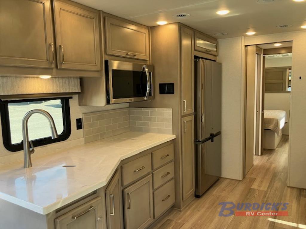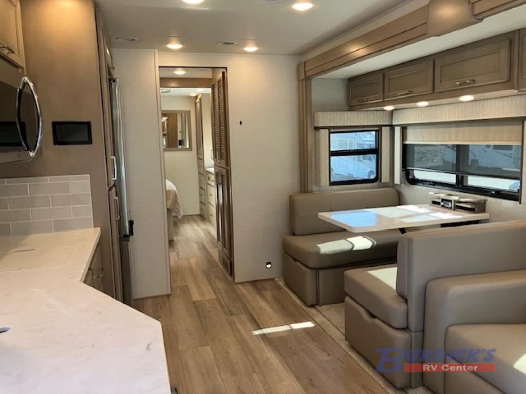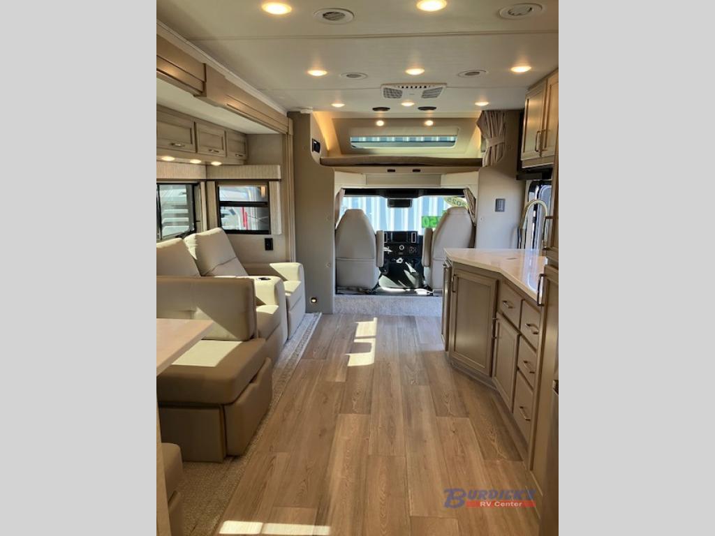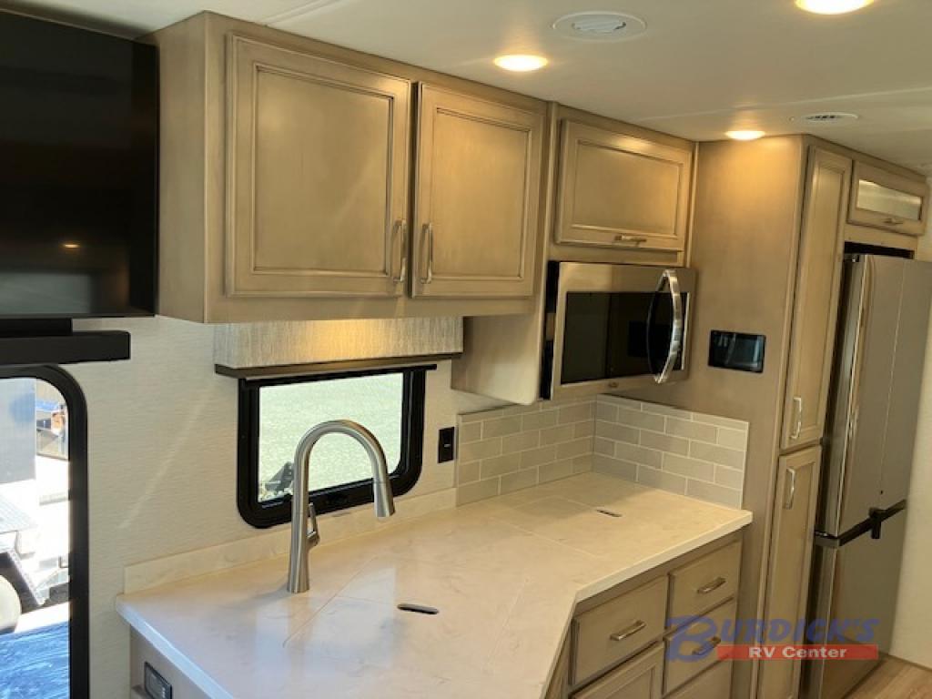 Whether you travel while you work or enjoy long-trips in your RV, this coach provides all the luxury, flexibility and comfort you could want! The main living and kitchen area is spacious with a furniture slide which includes a booth dinette and a slide-a-bed sofa which both offer sleeping space when needed for guests. The cook will love using the stainless steel convection microwave oven and the induction cooktop when making meals, and the French door residential refrigerator will hold lots of cold food. The separated bathroom allows two people to get ready at once, and the mini-king bed slide gives you more floor space in the bedroom to get to the closets and dresser. You will find a 32" 4K Smart LED TV in the bedroom to watch before bedtime, and the exterior offers a 32" LED TV to watch the big game while relaxing under the electric awning with LED lights. And you might like to add the washer/dryer option to the prepped closet to keep everything clean while on the road.