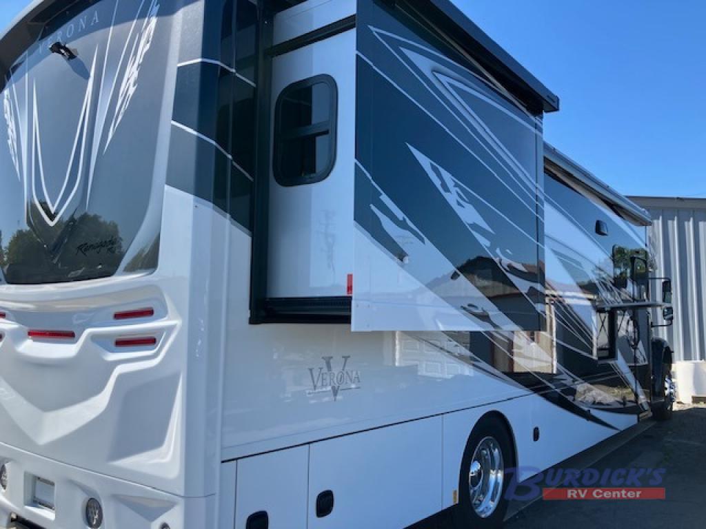 With any Renegade Verona Super C diesel motorhome, you will have confidence to explore the open road! The Cummins 360HP 3200TRV Allison transmission gives you the power and performance to travel anywhere, and the 3000-watt true sine wave inverter makes this an electric coach, plus the aluminum automotive cab construction is designed and tested for occupant protection. The interior boast about the solid hardwood cabinets including every cabinet stile and passage door are made from hardwood for true residential craftsmanship and the articulating cabinet hinges complete the package. More luxurious features include the solid surface countertops, the memory foam mattress, and the wavy patterned fiberglass shower with a glass door. Choose extreme luxury, purpose and durability; take a Verona on the road today!